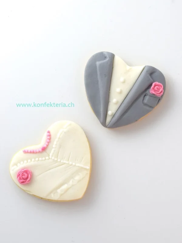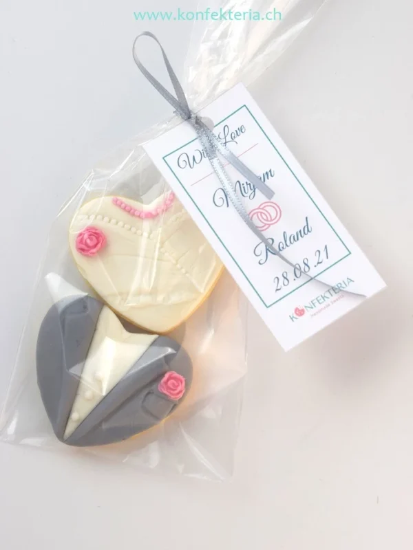 Diese handdekorierten Cookies sind mit einer hausgemachten Schokoladen-Dekormasse überzogen und mit Royal Icing dekoriert. Andere Farben auf Wunsch machbar.