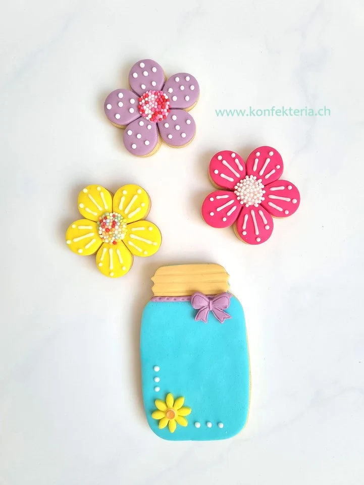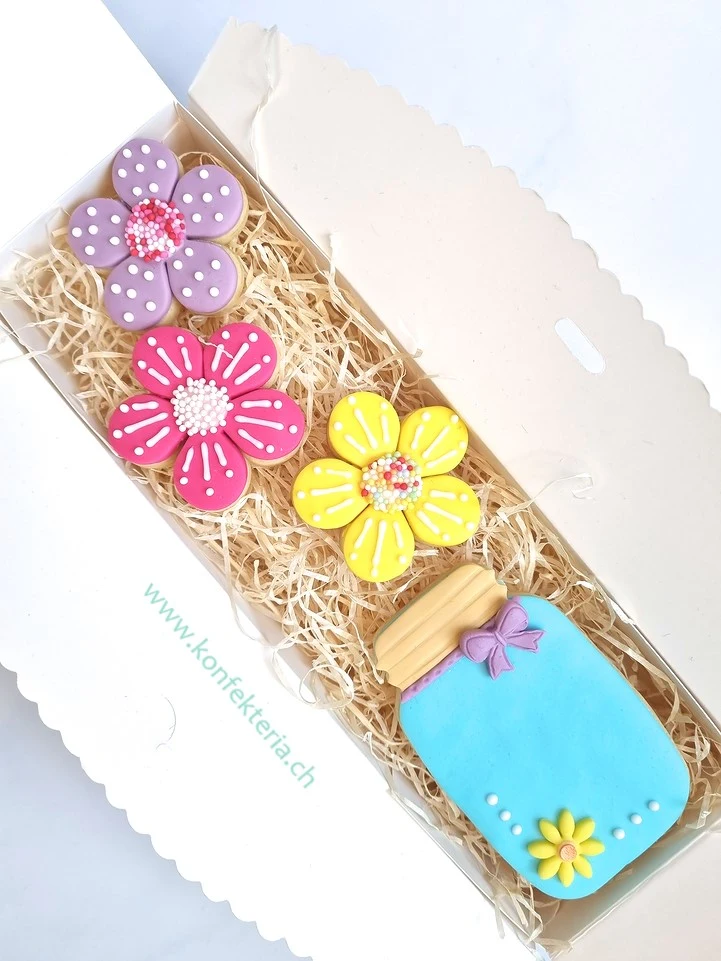 Handmade Cookies Set, mit hausgemachter Schokoladendekormasse, Royal Icing und Streusel verziert. Für Vegetarier und Halalernährung geeignet.