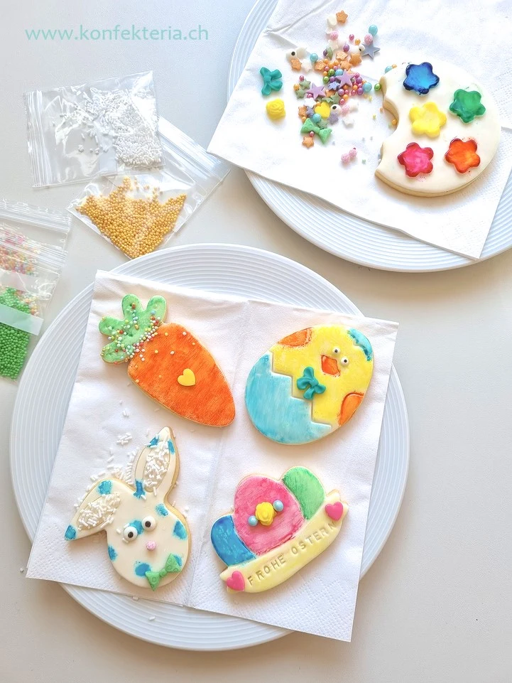 Paint your own cookies in Küken-, Hasen- und Karottenform.